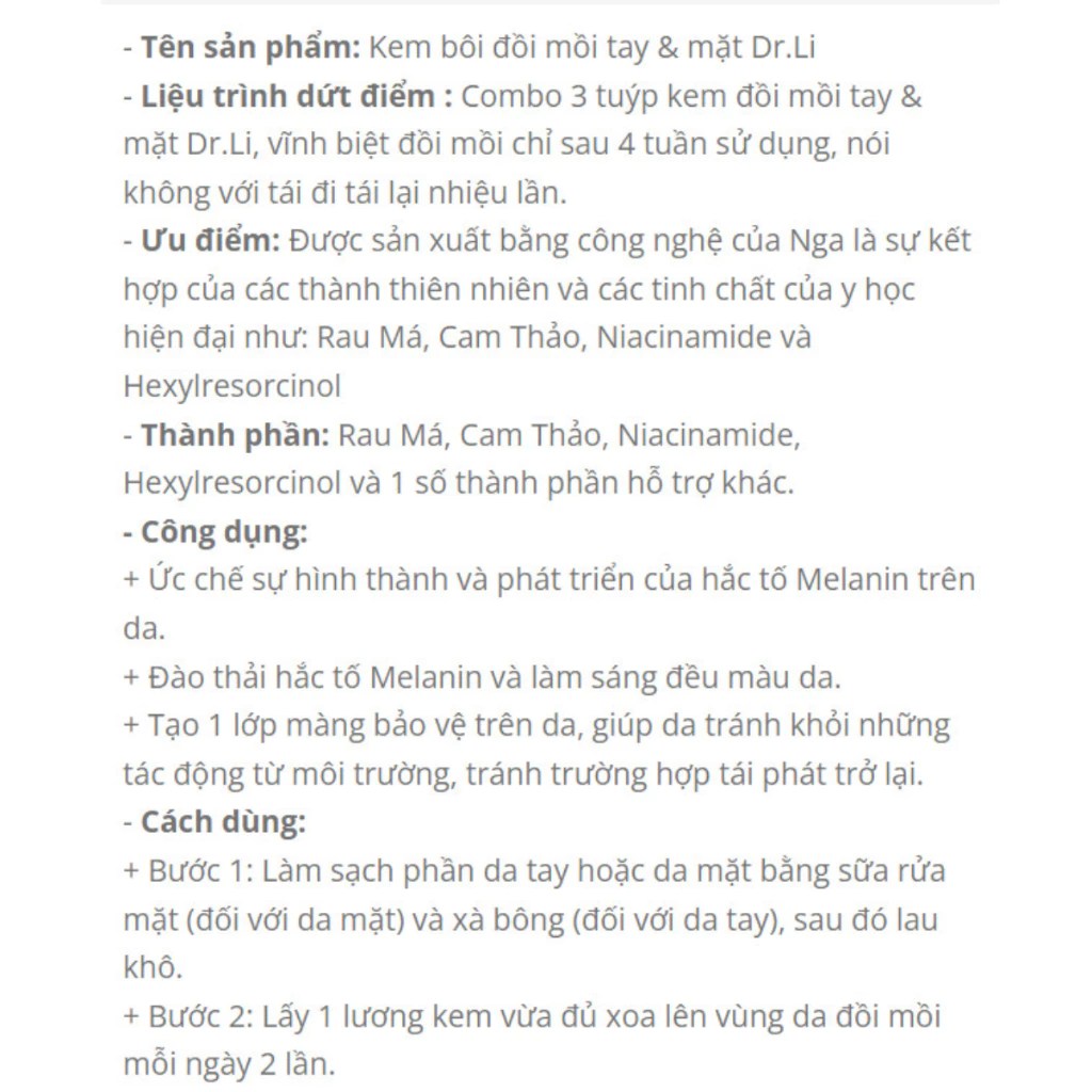 👉 HOẠT CHẤT ĐỒI MỒI : Kem bôi đồi mồi nám tàn nhang Dr.Li