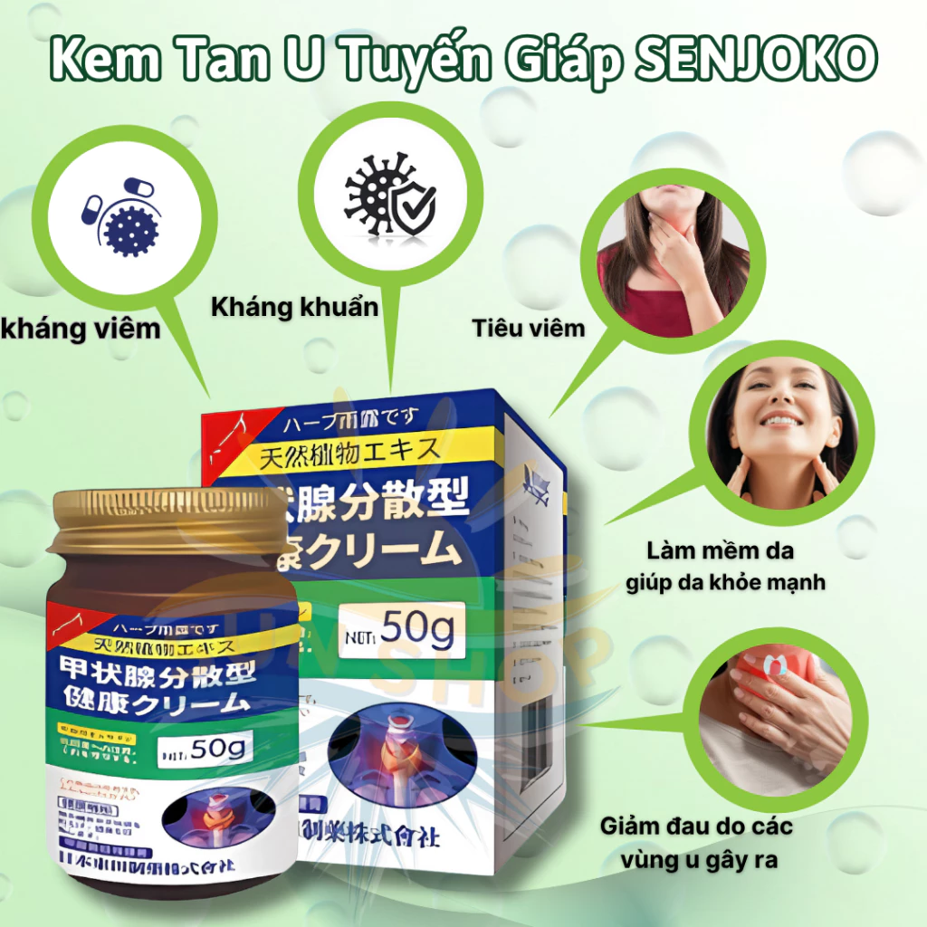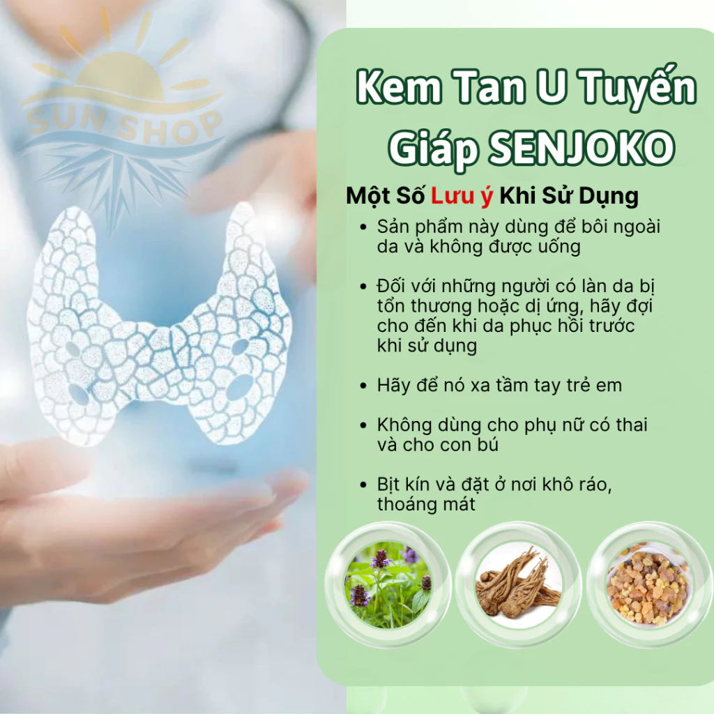 Kem Bôi SENJOKO NHẬT BẢN Hỗ Trợ Tan U Tuyến Giáp, Giảm Sưng Hạch Cổ, Giảm Kích Thước U, Giảm Sưng Viêm,Hạch Cổ