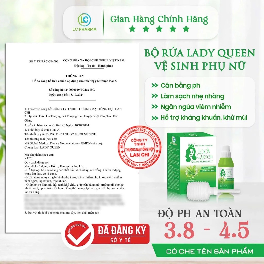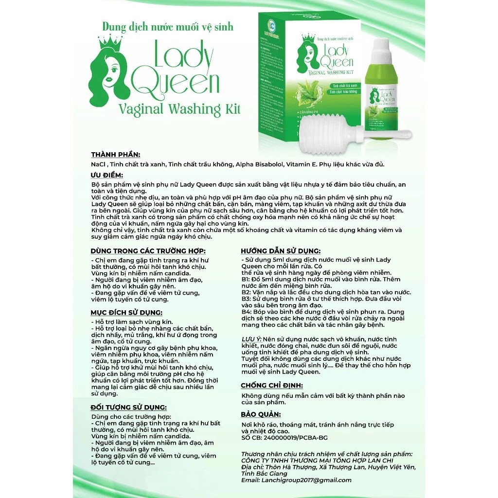 Muối vệ sinh phụ nữ LADY QUEEN 100ml Kèm 1 bình rửa, Giúp làm sạch nhẹ nhàng, đấy lùi tình trạng ngứa ngáy khó chịu