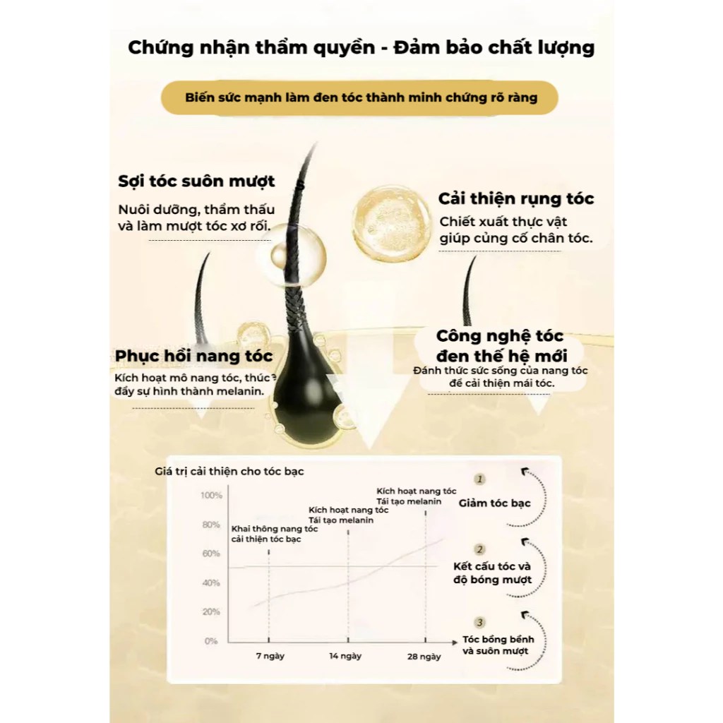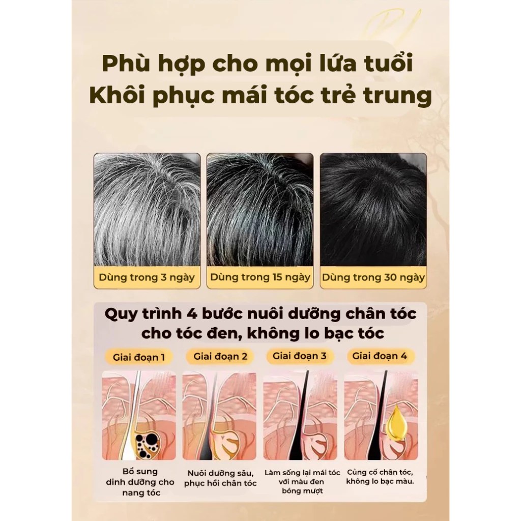 Hỗ trợ đen tóc tự nhiên: Che phủ tóc bạc, giúp tóc ngày càng đậm màu.